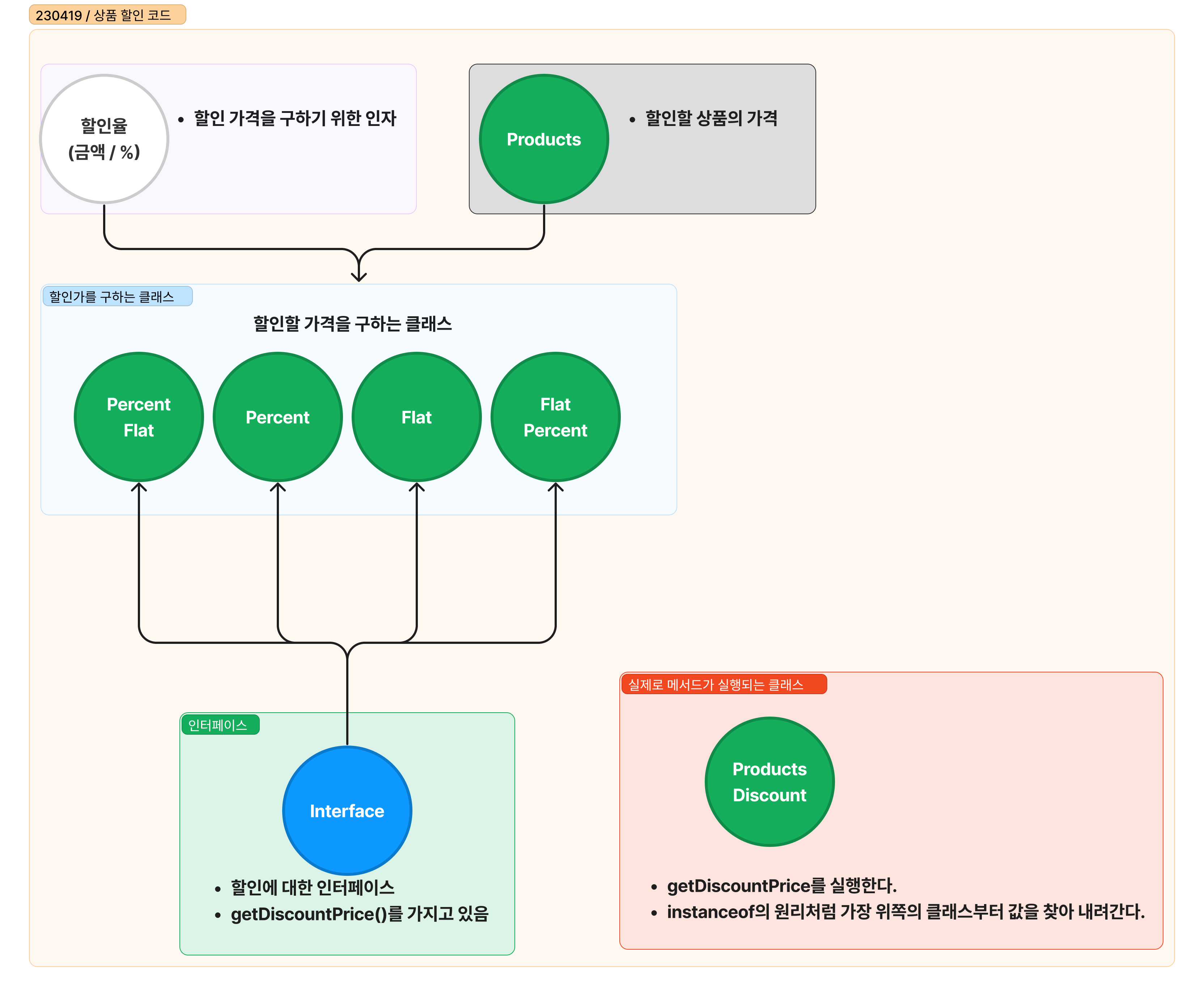 공통적으로 할인할 금액을 구해야하기 때문에 typescript의 interface를 사용해서 구조를 만들어보자.