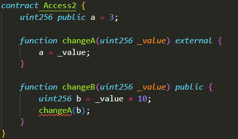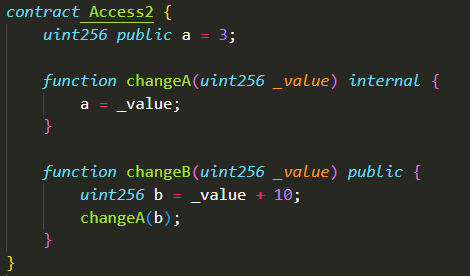 internal은 상속받은 컨트랙트에서도 사용이 가능한데, 아직 상속의 개념을 배우지 않았으므로 넘어가도록 하자.