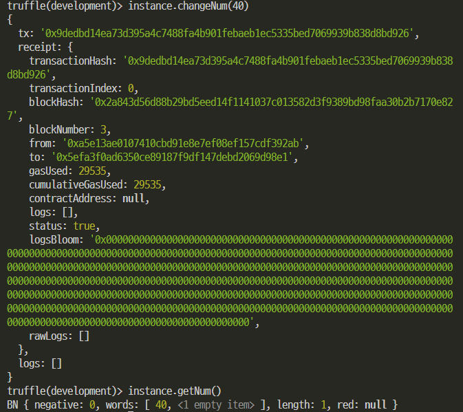 다음은 changeNum을 이용해 값을 변경하고 다시 getNum()을 통해서 값을 출력해보자.