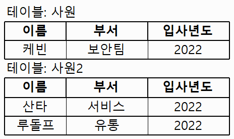 SAMPLE) 이름을 검색하는데, '사원'테이블에서 입사년도가 2023인 이름을 검색한다.
