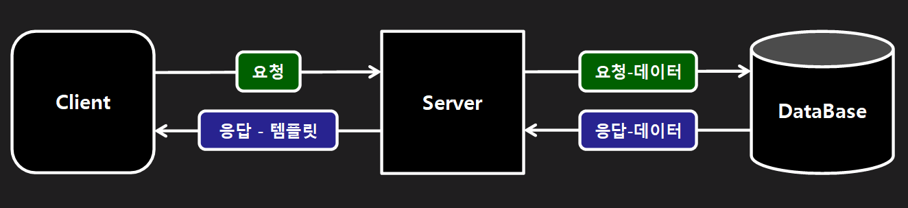 여기서는 서버가 템플릿을 이용하여 화면(View)를 그려주고,