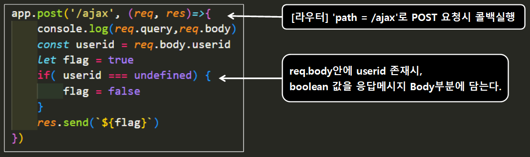 서버측에서는 flag에 불린값을 담아서 보냈기 떄문에, true나 false로 도착을 할 것이다.